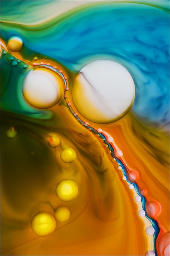 I love playing with light, colors and shapes. I often use liquids when taking photos. Liquids are hard to control, so there is always a random element in the picture and it's hard to predict the final outcome. I can control the colors and shapes, but the final result is controlled by the liquids.