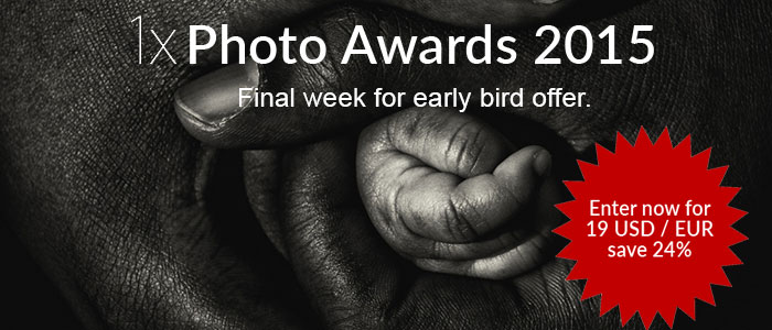 You now have a final opportunity at submitting photos to 1x Photo Awards 2015 to a very favourable prize. If you submit your entries this week, you will only pay 19 USD/EUR for each entry. That means you'll save 24% on each photo you enter in the contest. There are no limitations on how many photos you can compete with. The more photos you submit, the greater are your chances of winning.