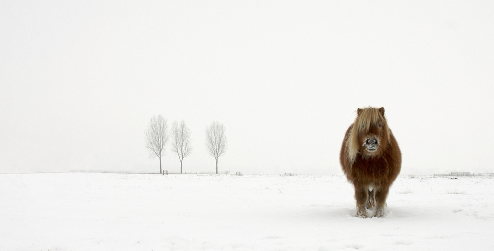 That will be my Sony award-winning picture 'The Cold Pony'. It was freezing cold that day, the country lanes were slippery after fresh snow, and I went out looking for animals in the snow. Close to home I found this pony. A friend of mine gave me the advice to clone stamp another pony in the background out, and get rid of a part of the fence on the right. Another friend who prints my pictures noticed that I made a few mistakes in the cloning job but I put that right.  I submitted the picture and much to my surprise I won.