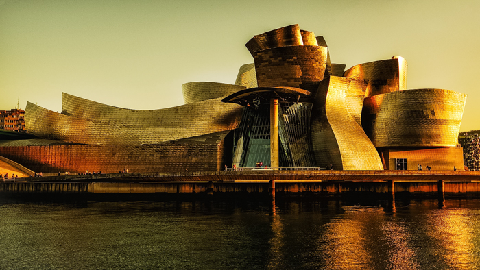 Spain, Bilbao, sunset at Guggenheim Museum